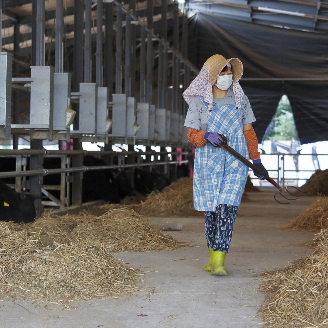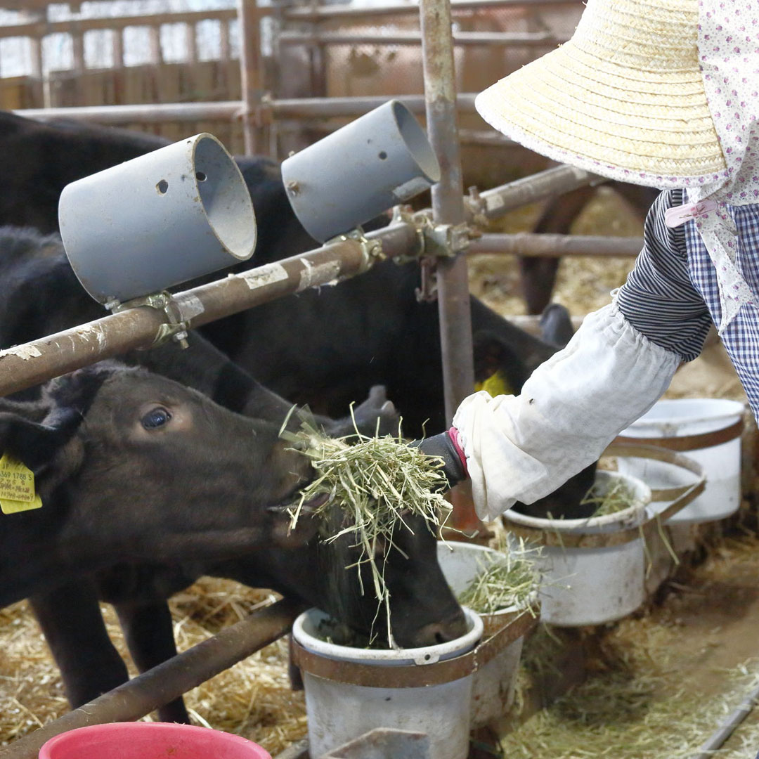 Ohba Farm was founded by Tomiyoshi Ohba as a dairy cattle farm in 1970. In 1993 his son, Kazuya, joined the family business, foreseeing the importance of switching to farming cattle for meat production. Ohba Farm began its operation as a finishing farm for kuroge wagyu, Japanese black cattle. And today part of its operation follows the integrated farming system, Ikkan Keiei methods. Ohba Farm has been capturing many awards at the Nikugyu Edaniku Kyoshinkai (Meat Carcass Evaluation Competitions) which are competitions organized by prefectural, regional and national governments throughout the year. In one-month Ohba farm submitted 30 cattle to such competitions. “Until we slaughter the cattle and see the actual quality of the meat, I have little idea about the value of it. I sometimes feel like a gambler when the meat of the cattle that I have raised with all my dedication and love is being inspected by judges at competitions. My adrenalin goes up. Winning at the competitions fills me with the joy for being in this trade and strengthens my devotion to raising my cattle better and better every day to produce only the highest quality of beef. Failure to win leads me to think what went wrong and why I failed. But this always leads me to improvements and a better place than where I was”, Kazuya says. Kazuya recently began building a new barn to house additional cattle. Ohba Farm aims to become a 100% integrated farm system, Ikkan Keiei, operation within the next five years. Ohba Farm fertilizes its pastureland with their own cattle compost and raises Italian ryegrass for animal feed using it to produce fermented whole-crop silage (WCS) for animal feed. “Try my beef. What you taste is the sincere care we have given to these cattle every minute for 30 months”, says Kazuya. The farm now has 47 cows and the remaining 120 cattle are comprised of bulls, heifers, bullocks and calves.