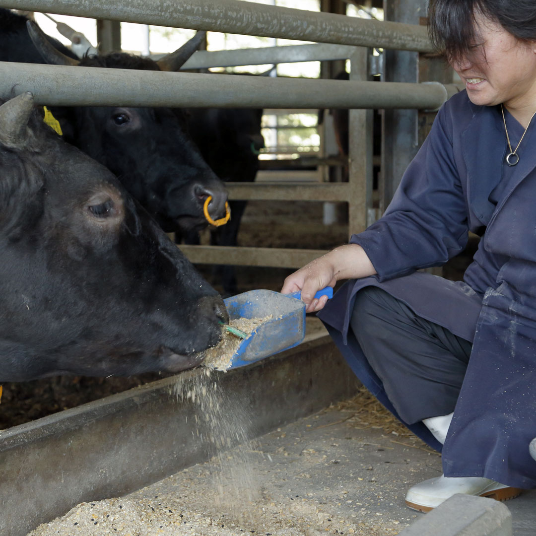 This Hitachigyu Select Farm is family owned and operated by Tetsuo Shibasaki and his two sons, Michiya and Arinobu in the town of Sakai in Ibaraki Prefecture. The meat that comes from Shibasaki Farm is so popular in the locality that it was proudly chosenby the Sakai Municipal Town Government as a recipient of a gift through the Furusato Nozei Program. The Furusato Nozei Program is a plan developed by the Tokyo Government that offers taxpayers a deduction on their income and residence taxes if the taxpayer makes a donation to a rural municipal government of one’s choice. In return for the contribution, in addition to the tax break, the donor receives products produced in the prefecture. In 2005 Mr. Shibasaki added the breeding business to his existing finishing farm system and began the process of becoming an Ikkan Keiei fully integrated farm. This approach helped stabilize his business and made it more efficient. In 2015 a massive typhoon brought huge damage to his farm. The flood waters killed sixty percent of his 215 cattle. His determination to rebuild his business was supported by his sons, his community, and the municipal government. Mr. Shibasaki has a plan to make his already premium quality beef unique in flavor and quality. He is in the process of switching from a national producer of brewers’ by-products (sake lees, grain solids) used as a part of feed to suppliers who produce such nutritious feed in his hometown. “I am now negotiating with the owners of those breweries because I want to be able to have complete visibility into the production of feed for my animals”. Being able to say “Made in Sakai Town” gives him pride in his beef. He knows that every step in the process of beef production including the supply of feed must be under his control; everything counts. Ninety his cattle are cows and the remaining 200 are comprised of bulls, heifers, bullocks, and calves.